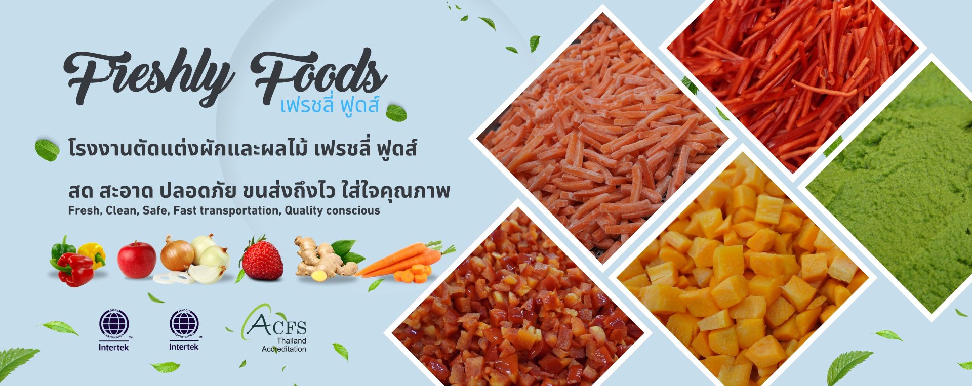บริษัท เฟรชลี่ ฟูดส์ (ไทยแลนด์) จำกัด ได้เริ่มต้นการเดินทางในธุรกิจอาหารแปรรูปผักผลไม้ ตัดแต่งเมื่อปี พ.ศ. 2557 กว่า 10 ปีที่ผ่านมา เราสั่งสมความรู้และประสบการณ์อันล้ำค่าจากลูกค้า พาร์ทเนอร์ และผู้เชี่ยวชาญในอุตสาหกรรมอาหาร